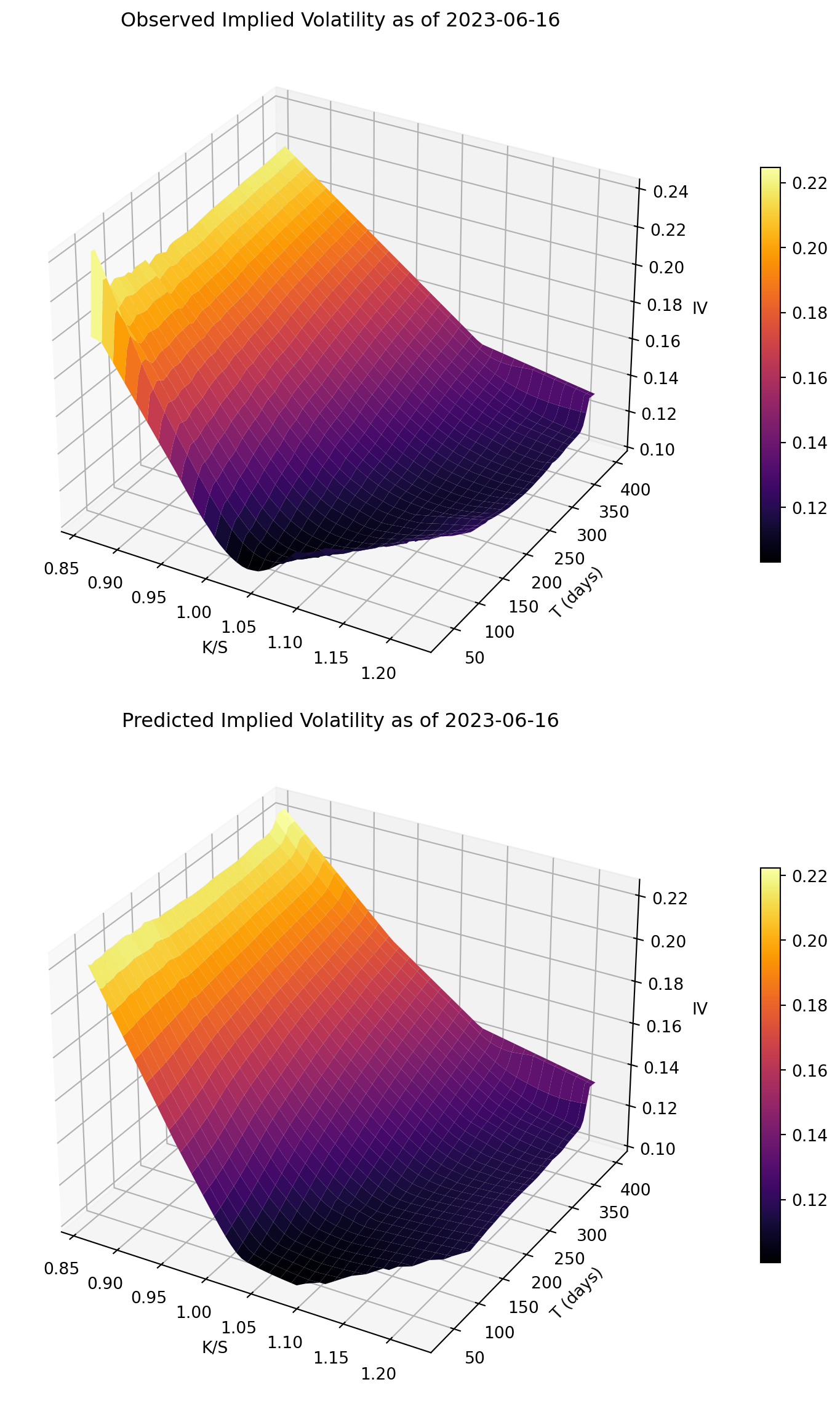 - IV prediction quality should be judged both statistically (MAE/RMSE/R^2) and visually (surface shape).